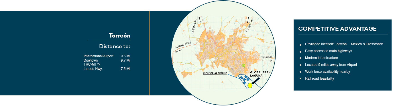 To develop a high standard design & spec’s Industrial Park in the city of Torreon, hub of the Laguna region located northeast Mexico, offering flexible and competitive solutions to national and international companies looking for an industrial site to locate their plants.